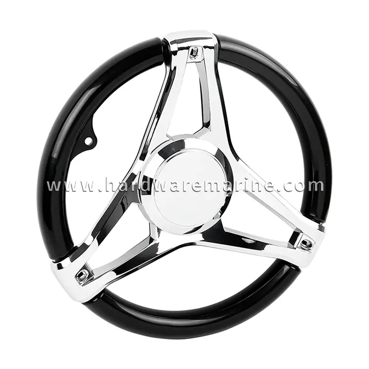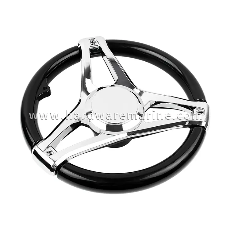నాబ్తో స్టెయిన్లెస్ స్టీల్ పు నురుగు 3-స్పోక్ బోట్ స్టీరింగ్ వీల్