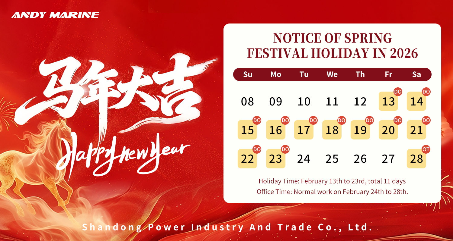 కొత్త సంవత్సరంలో, ఆండీ మెరైన్ ఉత్పత్తి నాణ్యత, కొత్త ఉత్పత్తి అభివృద్ధి మరియు కస్టమర్ సేవపై దృష్టి సారించడం కొనసాగిస్తుంది, మరింత దీర్ఘకాలిక సహకార అవకాశాలను కోరుతూ ప్రతి కస్టమర్కు బాగా సేవలందిస్తుంది. మీ నమ్మకం మరియు మద్దతు కోసం మేము హృదయపూర్వకంగా ధన్యవాదాలు.